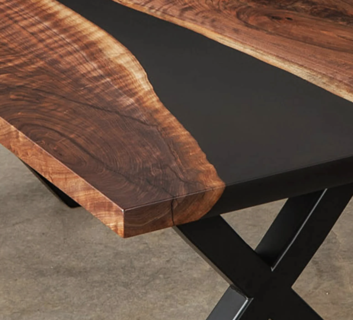 Custom Black Walnut Epoxy Resin Table – Black Resin BWB-35